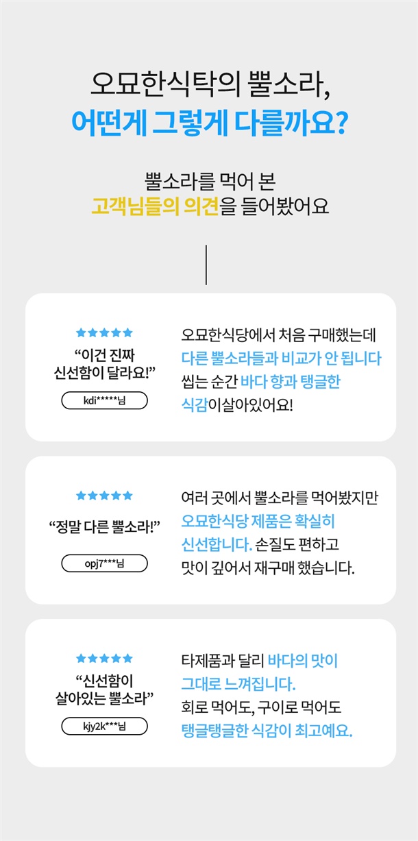 바다 본연의 맛과 탱글한 식감을 그대로 담았습니다.