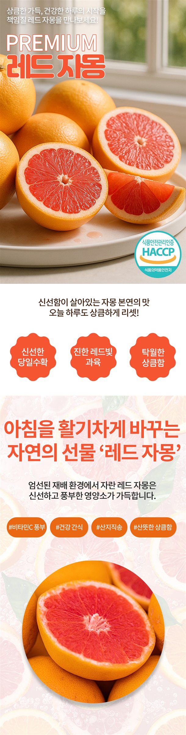 신선한 자몽 한 입이 하루를 리프레시!햇살을 머금은 레드 자몽, 건강한 달콤함으로 채우세요