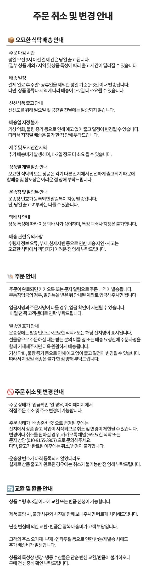교환 및 환불 안내