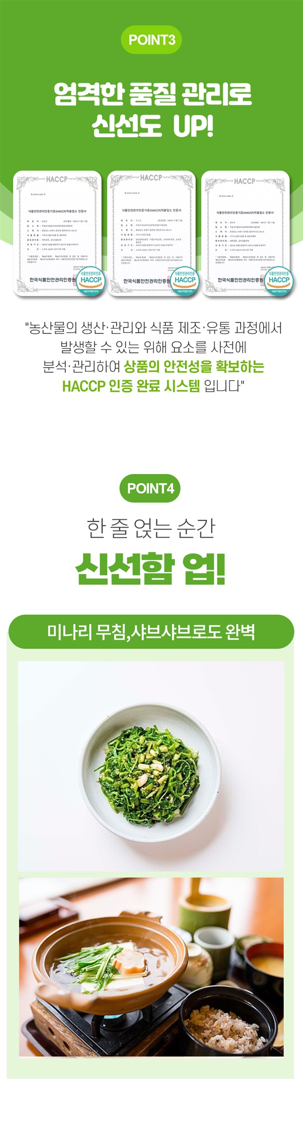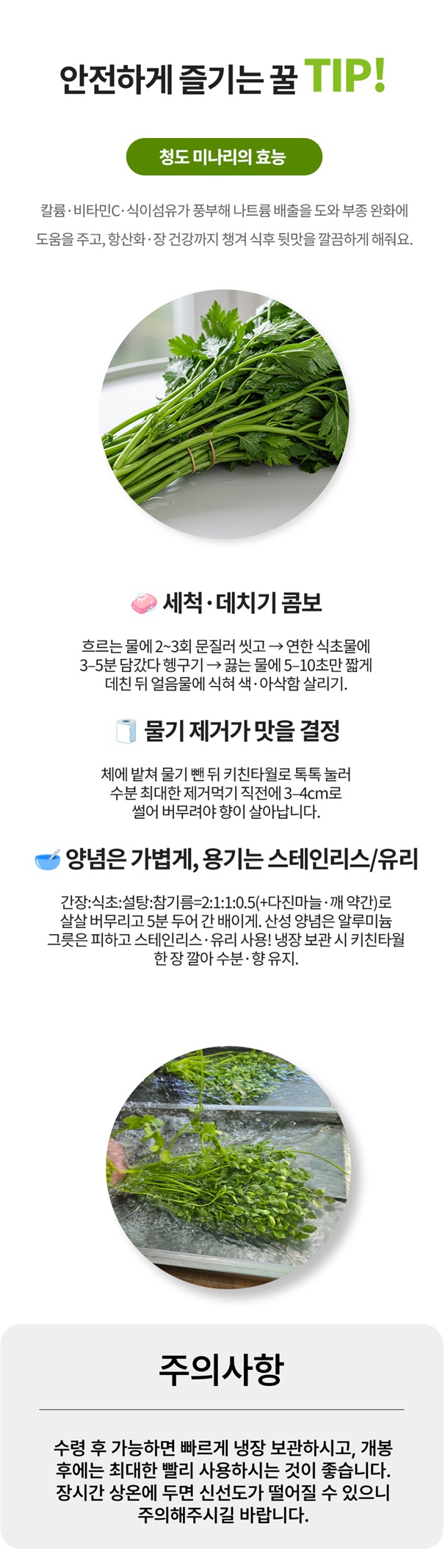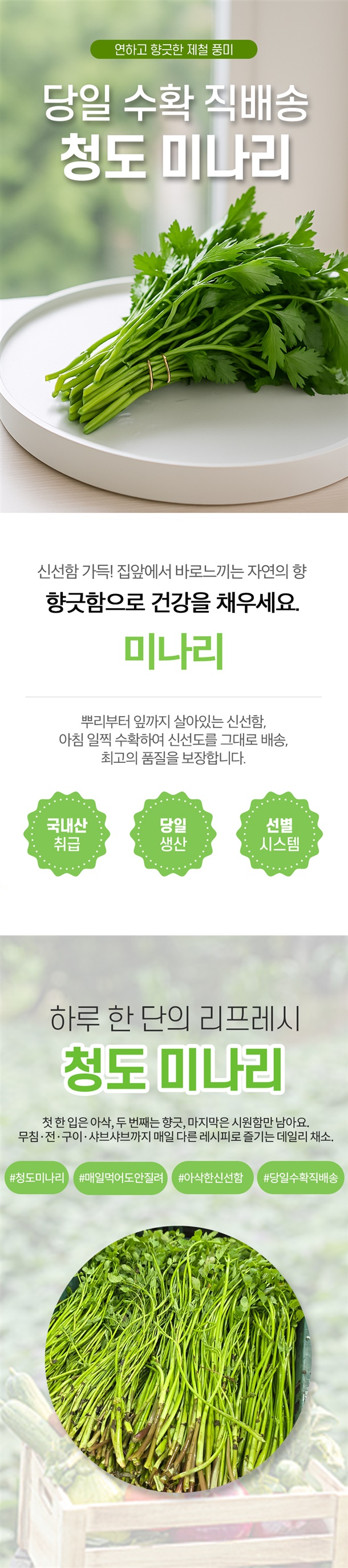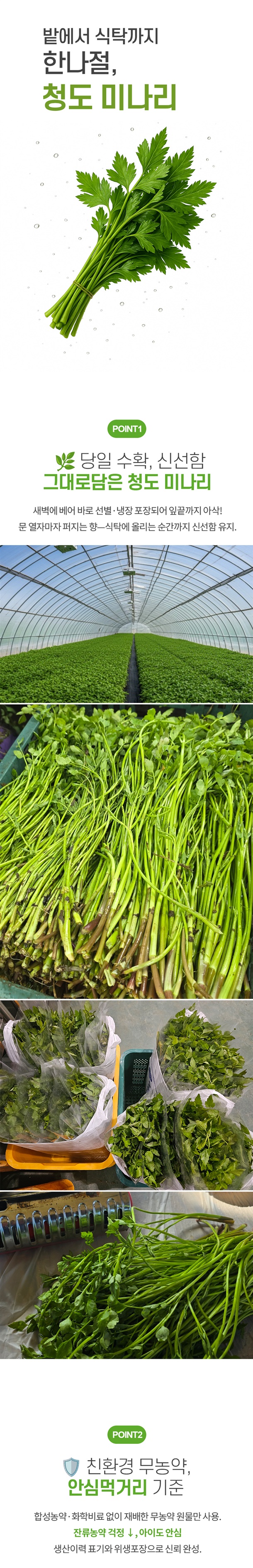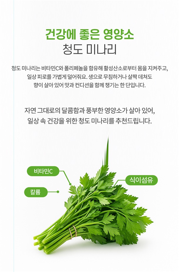 친환경 무농약 재배 + 저온유통으로 신선함을 지켜요. 통통한 줄기와 향긋한 잎, 세척만으로 바로 조리 OK