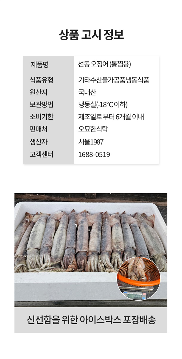 통으로 찜해도 흐트러지지 않는 탱글한 식감의 선동 오징어